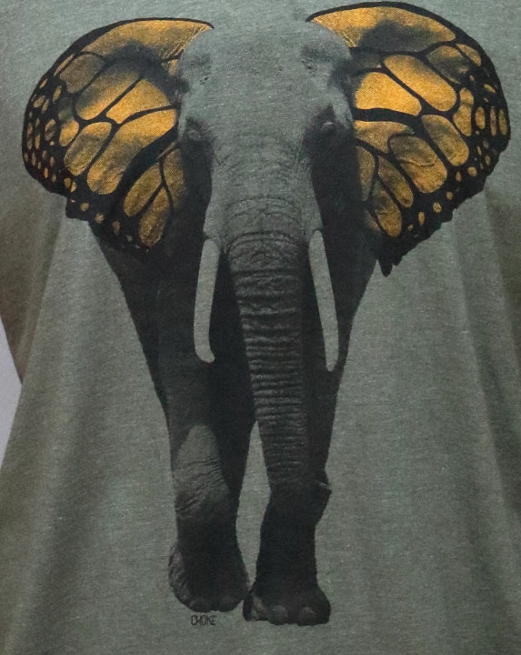 "Elephly" graphic t-shirt by Choke. 50%/50% cotton/polyester.